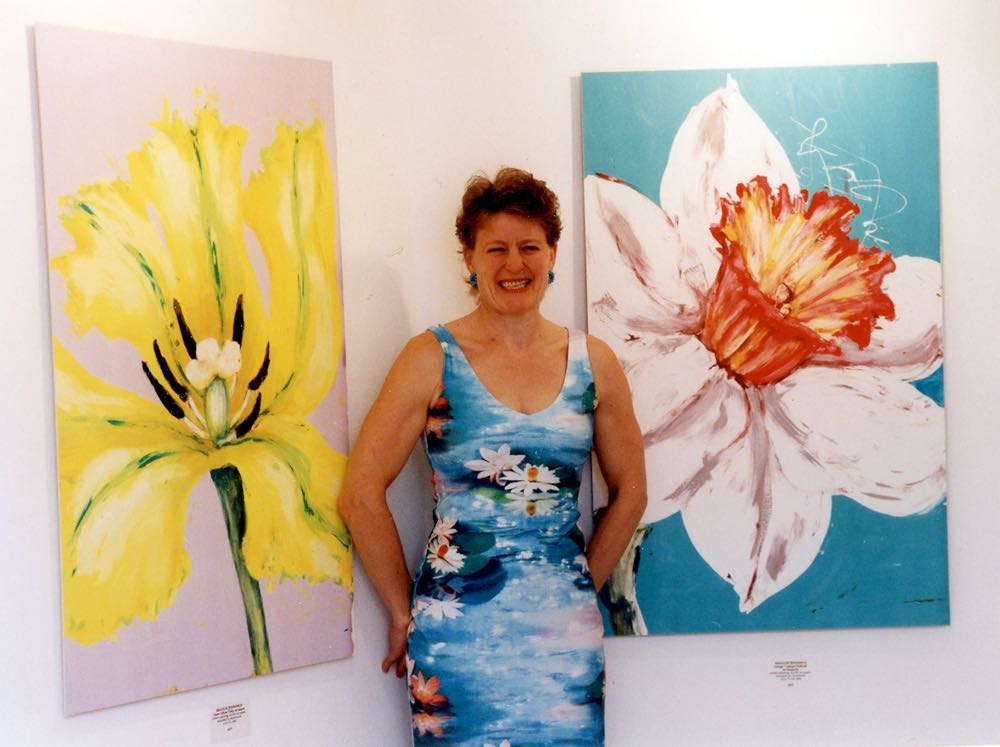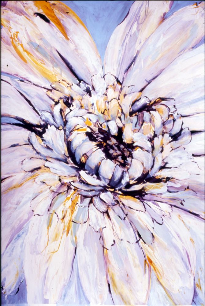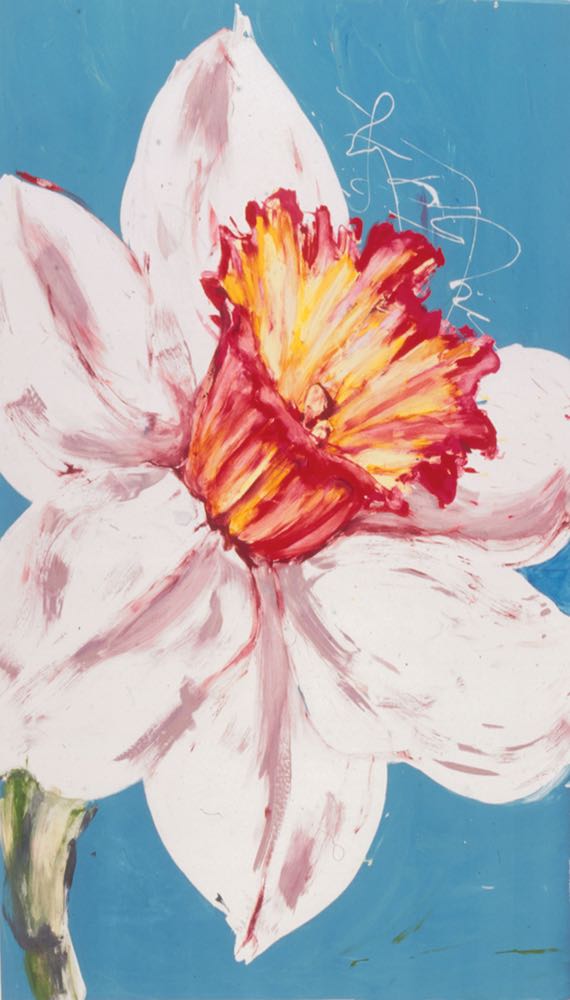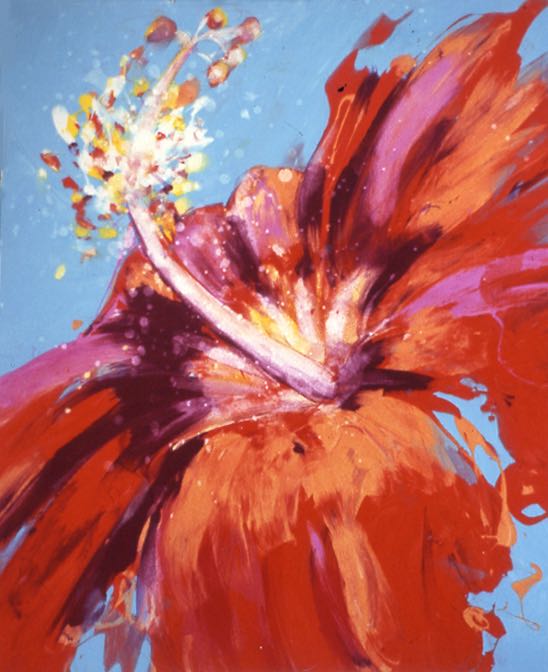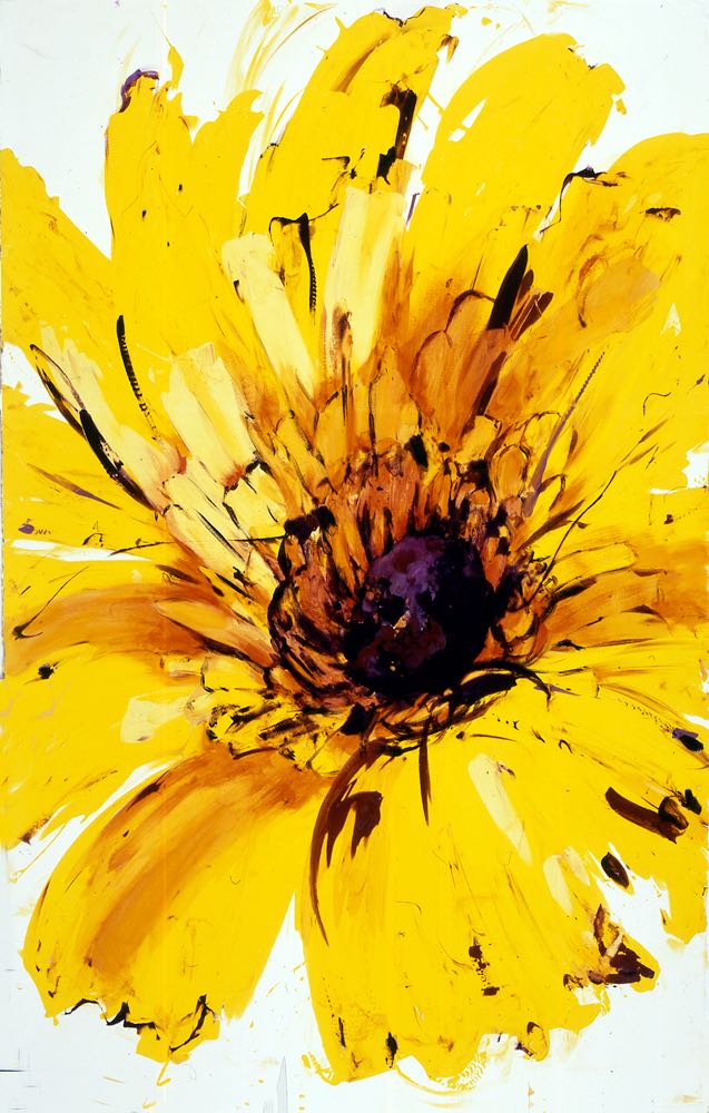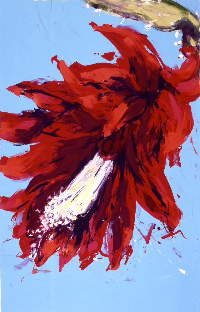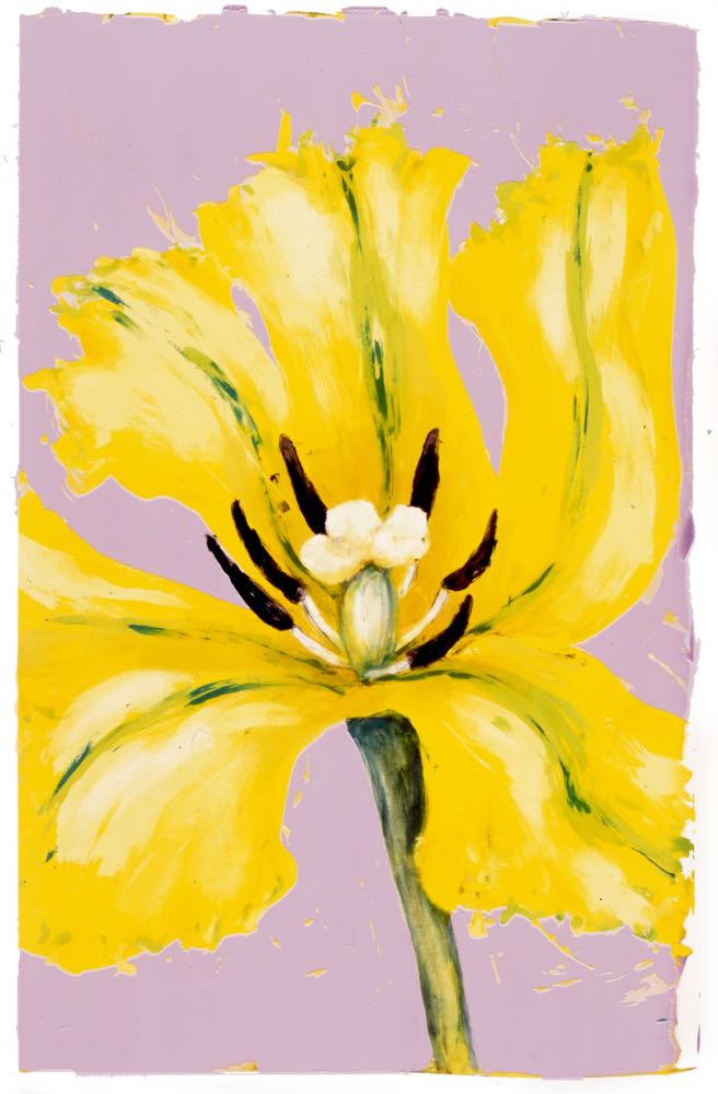 Large mono-screenprints, painted speedily with energy and vibrancy to echo the full blooms.